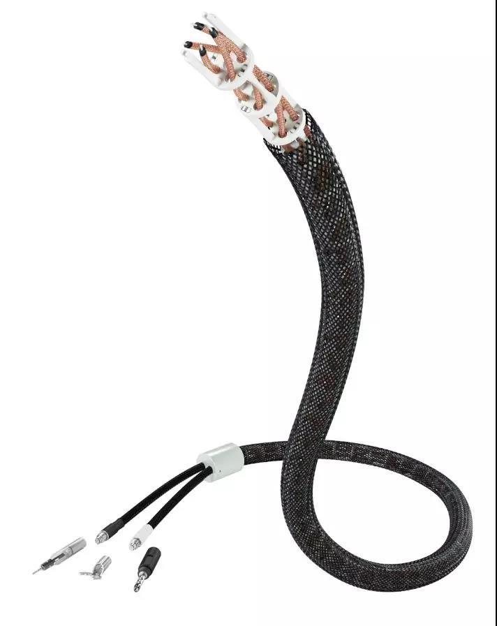 由于喇叭线在整个系统中承载着最高的电流,因此它们需要足够的导线尺寸以确保低损耗传输。而电流产生相应强的磁场。另外,线材电感构成(交流)电流的频率依赖性电阻。因此,喇叭线要求低电感。LS-1204 Air实现了这一点:高度复杂的导线布局,“四条多芯”设计降低电感,从而在宽带率范围内产生完全中性的声音。而且,该设计导致中和各个导体周围的重叠磁场。所有频率都可以自由传输,没有任何延迟,从而产生令人难以置信的开放声音,具有前所未有的细节。在空气螺旋管末端,LS-1204 Air内部的四条导线插入所谓的铝制分线器,将它们安排为接收连接器。在分离器和连接器之间,Inakustik实现了由特殊弹性体模制而成的超柔性部件。这些部件使用专门设计的塑料插头固定在分线器内部,因此即使在连接器区域也可确保最大的导线灵活性。模制部件延伸至连接器前部并包围内部连接器组件,这突出了LS-1204 Air的简洁而迷人的外观。