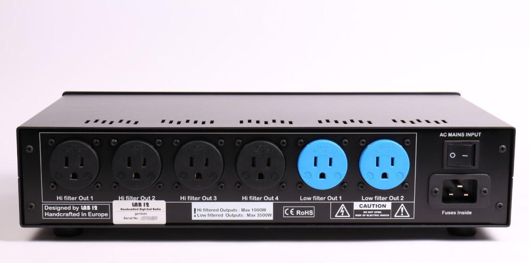 针对发烧系统,Lab 12更推出的电源处理器Gordian,一直成为我关注的对象,这次终于有机会接触。Lab 12对它的定位很精准,这款产品被定义为多功能电源处理器/插座,当中隐含三个层面,第一是多功能,意味着Gordian不只是对电进行处理这么简单,第二层面就是电处,第三层面就插座。能作为插座,背面的分插就存在不同滤波形式的选择,已达到更多电源分配的目的。