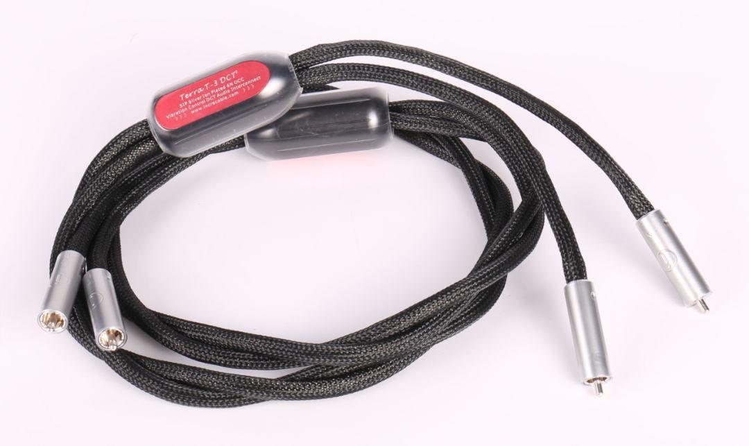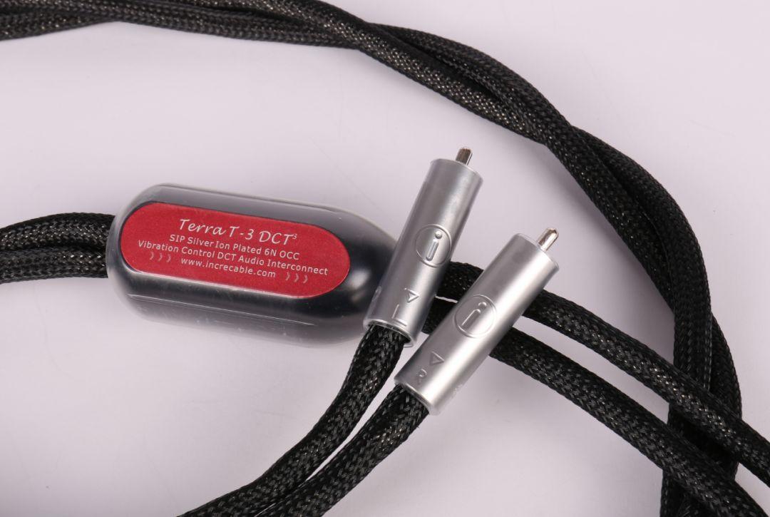 Terra T-3 DCT³使用的导体是6N OCC单晶铜,并经过最高纯度的SIP镀银制作,而编织网方面也为高纯度镀银的6N OCC单晶铜制成。而披覆方面则采用聚四氟乙烯或硅电介质进行保护,并能应对超高频RF带宽范围。Terra T-3 DCT³跟旗舰相似,亦有着极低的电容和电感表现,加入LEAD-FREE 2%Silver Solder的高科技焊接工艺,亦令声音的通透度提高。在接口方面也是十分讲究,使用了高质量的标准75Ω插头,让音频玩家感受到广阔的音场和极高的分析力。