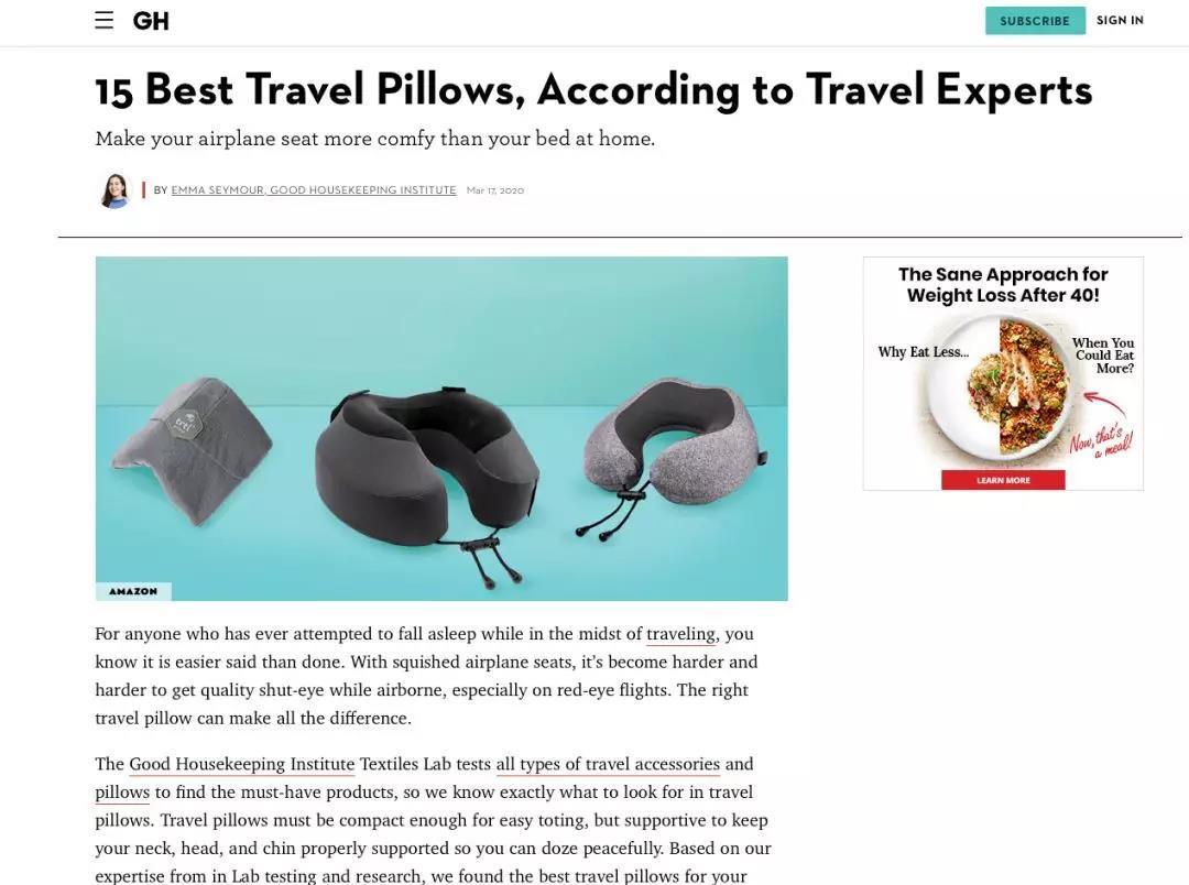 Cabeau S3当选美国“好管家”网站最佳旅行头枕NO.1