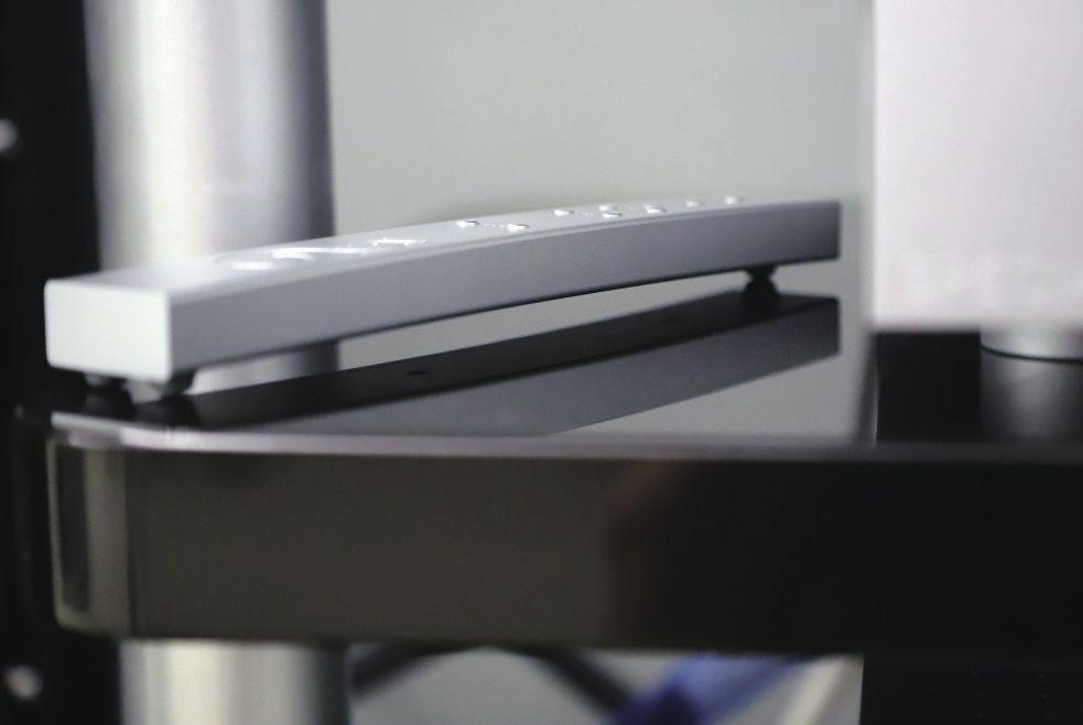 除此之外呢?凌智的伙计还介绍由B&O专门为之而设计的金属条型遥控器,这款遥控器外观咋看是没有什么特别之处,但据介绍条状的遥控器原来是略有微细弯曲,目的是方便遥控平放桌面时轻松抓取,这些“微不足道”的细节堪称人性。