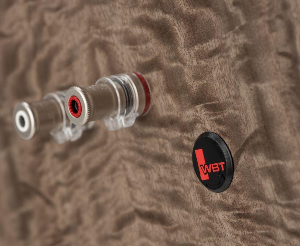 作为英伦赫赫有名的扬声器之继承者,Harbeth不仅延续了经典,细节处理上更是青出于蓝。这款M30.2纪念版书架式扬声器拥有华丽的箱体外观,外饰采用冷峻高贵的银桉树木皮,以英国手工打磨而成。Harbeth的扬声器有众多讲究之处,多年来一直坚守的薄壁箱体理念,纪念版M30.2也毫不例外。箱体内壁均贴覆阻尼板控制振动,内部以泡棉充填吸收多余的振动,以工字型隔板对内部结构加以补强,多方面的保障令Harbeth的薄壁箱体也能获得更理想的效果。螺丝的锁定磅数也经过精心测量,让声音有优化的表现。用料上也有更精良的投入,箱体背部的接线端子采用德国WBT推出的Nextgen扬声器端子,内部接面以高纯度软铜为材质,内阻极低,可以避免来自扩大机的讯号受到损失。分音器上使用了英国制造的发烧级聚合物电容,而内部走线更采用OFC无氧铜为导体,确保讯号在音箱内部行进时,不会产生不必要的音染。扬声器的前后面板更有标志性的Harbeth40周年限量生产版本的金属铭板,让这款全新的Harbeth M30.2更显矜贵。