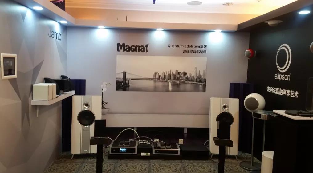 细问才知道,这对Edelstein有个别称叫“小钢炮”是德国Magnat品牌的,低音单元只有4.5″但是能达到34HZ的低频下潜。它的高音喇叭写的是只有1″,但折环很宽,看起来很特别,高频上限有50kHZ,最顶级的音箱估计也就这水平了。这也难怪在后面试听萨克斯风的声音相当清爽,表现得相对细腻。