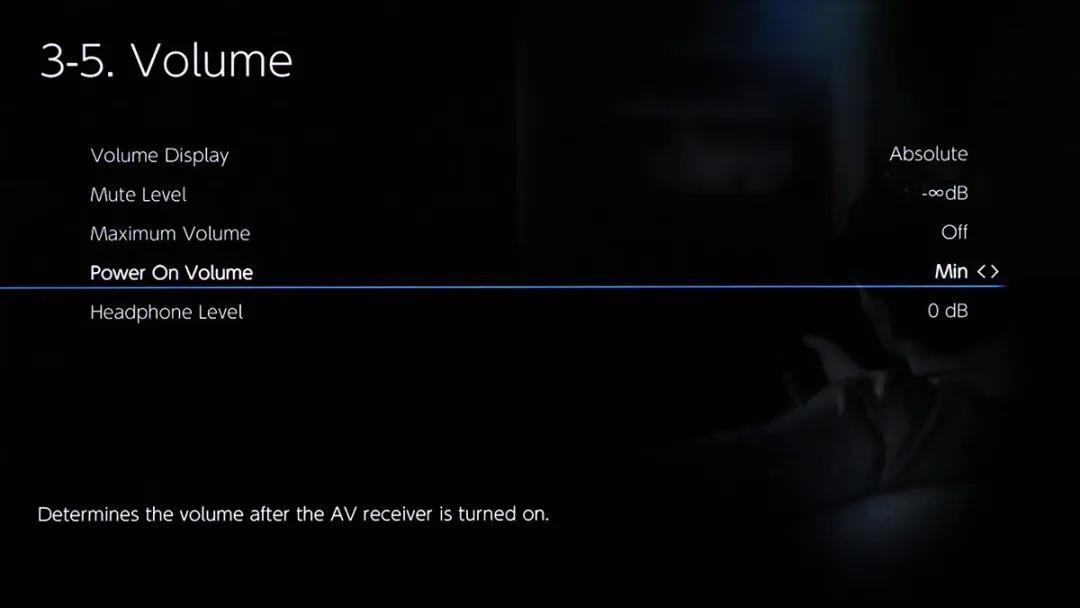 功放的 Power On Level 开机音量建议设定为最小或者调至一个 -40dB 的音量,避免一开机时用了上一次的大音量,很有可能会因为突变的大音量令喇叭等器材受损。