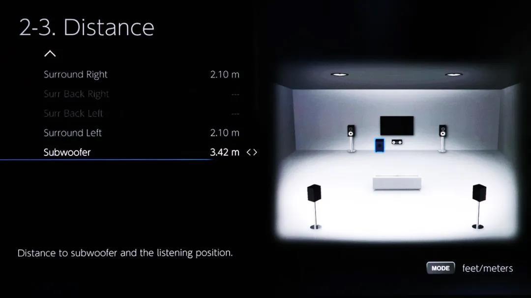 大家可以手动测量来微调麦克风测量的距离数值,通常低音炮会较为容易有误差。