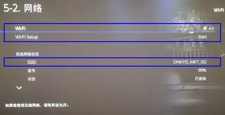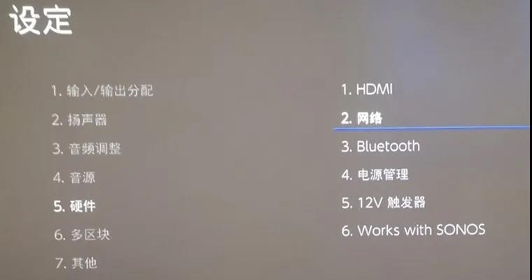 进入功放「设定」菜单,选择「网络」选项