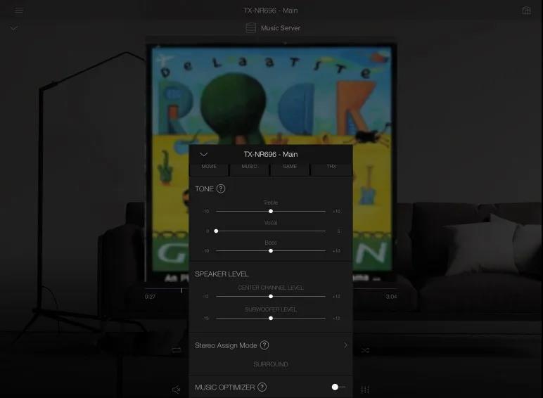 该应用程序不但支持通常的遥控功能(播放/停止,音量控制等),还支持多房间特性,允许在单个房间或多房间播放不同的音乐。