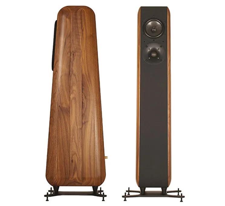 低音则是2枚130mm Rohacell Full-Apex单元发声,一枚安装于箱体底部,另一枚则安装于背板,借由地板与背墙的反射,试图营造更浑厚的低音量感。