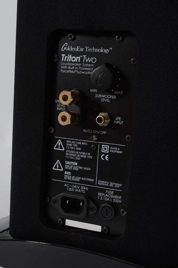 在外觀上,Triton 2呈弧面式的流線造型結構設計,除了給人有時上的立體感外,更重要是讓箱體內的聲波諧振和干擾降到最低程度,有效地降低箱體聲波的衍射,從而令聲音的重播最清晰、真實。Triton 2形體高挑修長,整個箱體除了採用厚實纖維板衝壓結合成型外,更在內部加入了支撐結構,而外飾則施以了華麗的黑色鋼琴烤漆。Triton 2的高音採用了品質優秀的(HVFR)高流速絲摺疊單元,這種單元的高音振膜材質具有非常高的耐高溫能力,其結構類似手風琴一樣的摺疊方式,整個結構安裝在磁力強大的釹磁場中,通過摺疊振膜在傳播聲波時將空氣擠壓,可有效地對於聽音空間內的空氣產生良好的阻抗控制,令聲波擴展的效率更高,大大地提高了動態範圍,也改善了高頻的柔順性和伸展性,可以輕鬆還原至35kHz的高頻響應。中音單元採用兩隻GoldenEar自行設計的高解析力單元,這款單元使用了獨特的MVPP技術,整個振盆錐體是經過計算機優化設計成型。在低音方面,Triton 2為內建的有源低音設計,它搭載了GoldenEar設計的1200W數字處理控制放大器,驅動2隻安裝在箱體前面板的5英寸×9英寸長沖繩低音單元以及搭配的2隻7英寸×10英寸平面式被動單元。由於這個內置於Triton 2的功能是一個以可編程邏輯運算器為基礎的設計,所有它能以278nS瞬間高速完美地處理很多不同的功能要求,從而能夠讓這對音箱發出低至16Hz低頻響應的同時,還可獲得極低的總諧波失真和極小的負擔反饋以及最佳的瞬態性能。