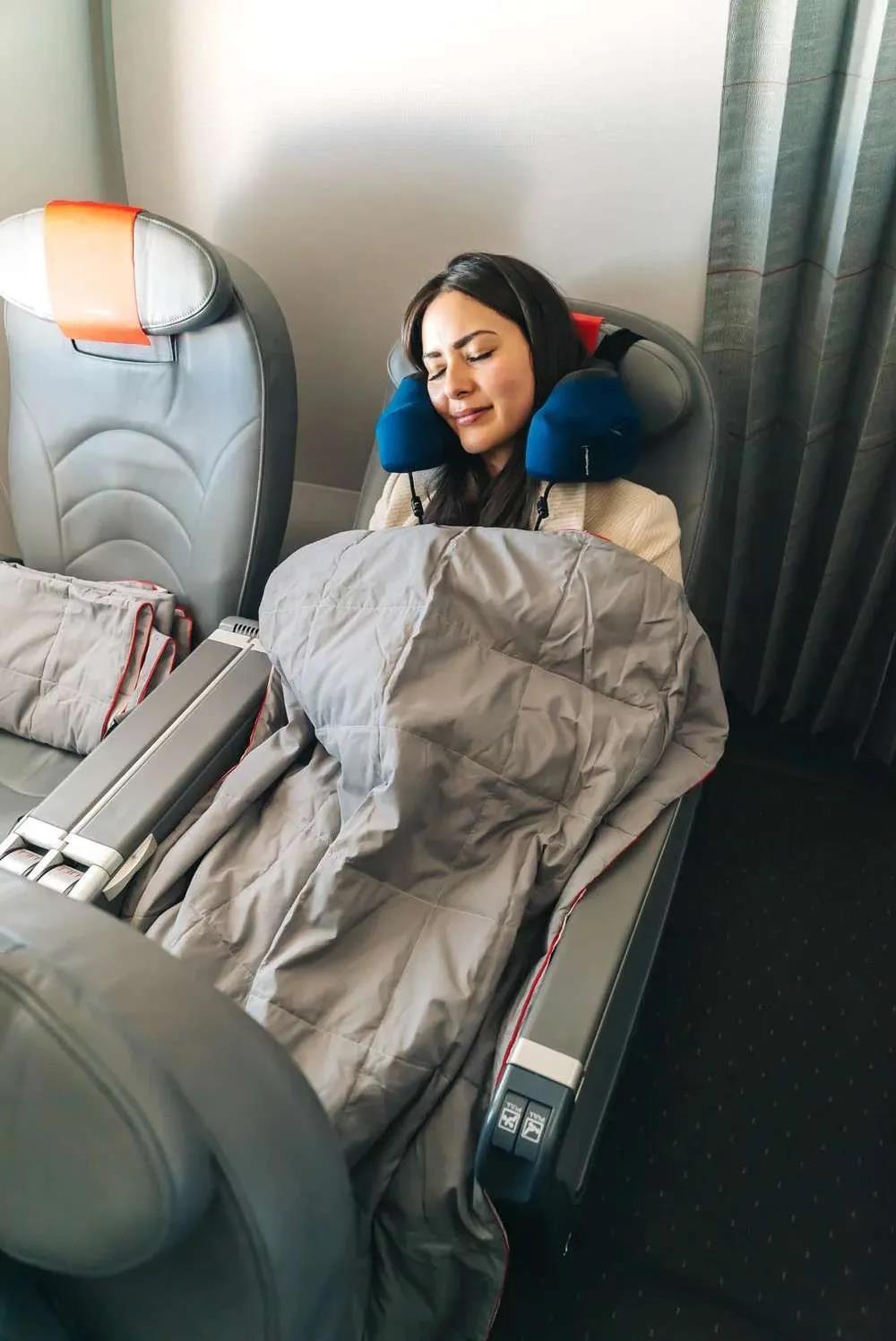 在实际体验中,得益于Cabeau S3的360°的支撑系统,套上U型枕以后,头颈与U型枕的贴合度非常高,能真切感觉到柔软舒服。再配合平坦的椅背和慢回弹太空记忆棉枕芯,有种躺下就想睡的感觉,总之,就两个字”舒服”!