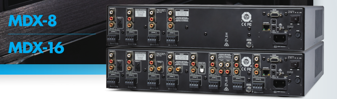 MDX系列可支持最高规格为24bit/192kHz的PCM格式信号,并提供最具灵活性的高清音频讯源支持。专利的高级负载监控(ALM)电路技术对快速而高效率的超D类放大方式形成了有力的支持,即使在最苛刻的负载情况下,也能够实现稳定的声音表现。我们对高功效的设计,达到甚至超过了全球节能标准。平顺、即时的数字切换输出方式,将多台MDX系列产品的数字输入通道连接起来,模拟旁路连接方式可以让多台MDX系列产品实现菊花式串联。该系列具有完整的数字/模拟矩阵式切换方式,用家可将任何模拟RCA输入端子、数字同轴输入端子或数字光纤输入端子指定给任何输出端子,也可以通过网页界面或通过IP命令进行实时切换,进行重新设置。