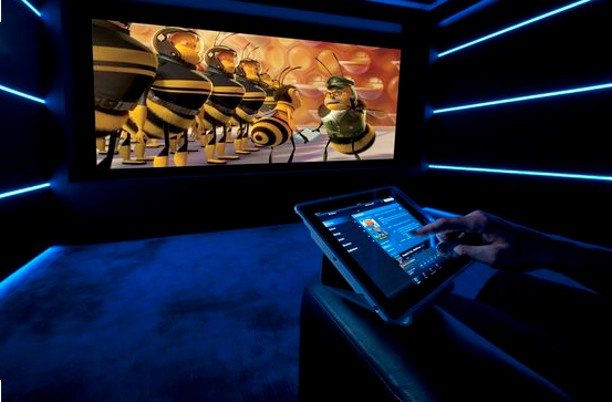 如视听室内所有设备开关操作均可在场景面板或手机APP、IPAD上实现;照明灯和氛围灯带的设置可在0-100档位调整亮度,这使得顾客能够在不同的观影模式下感受到不同的色温与照明度形成的影院氛围;更可在结束使用后,一键关闭所有的灯光、空调及影音设备,还包括智能沙发的复位。