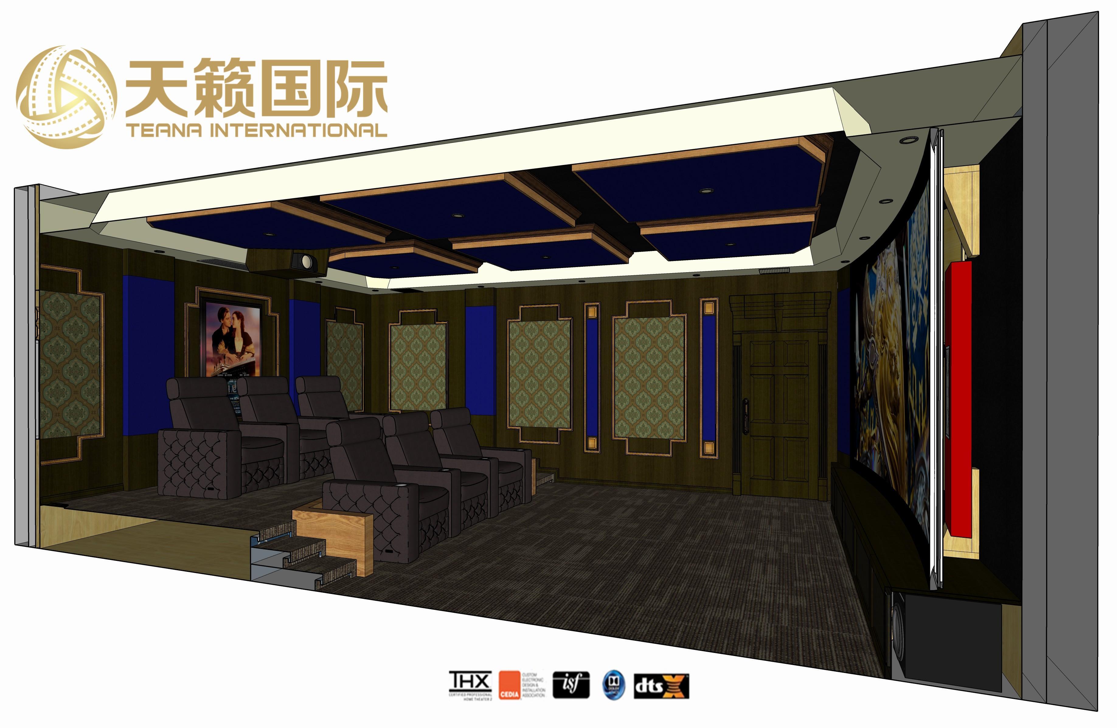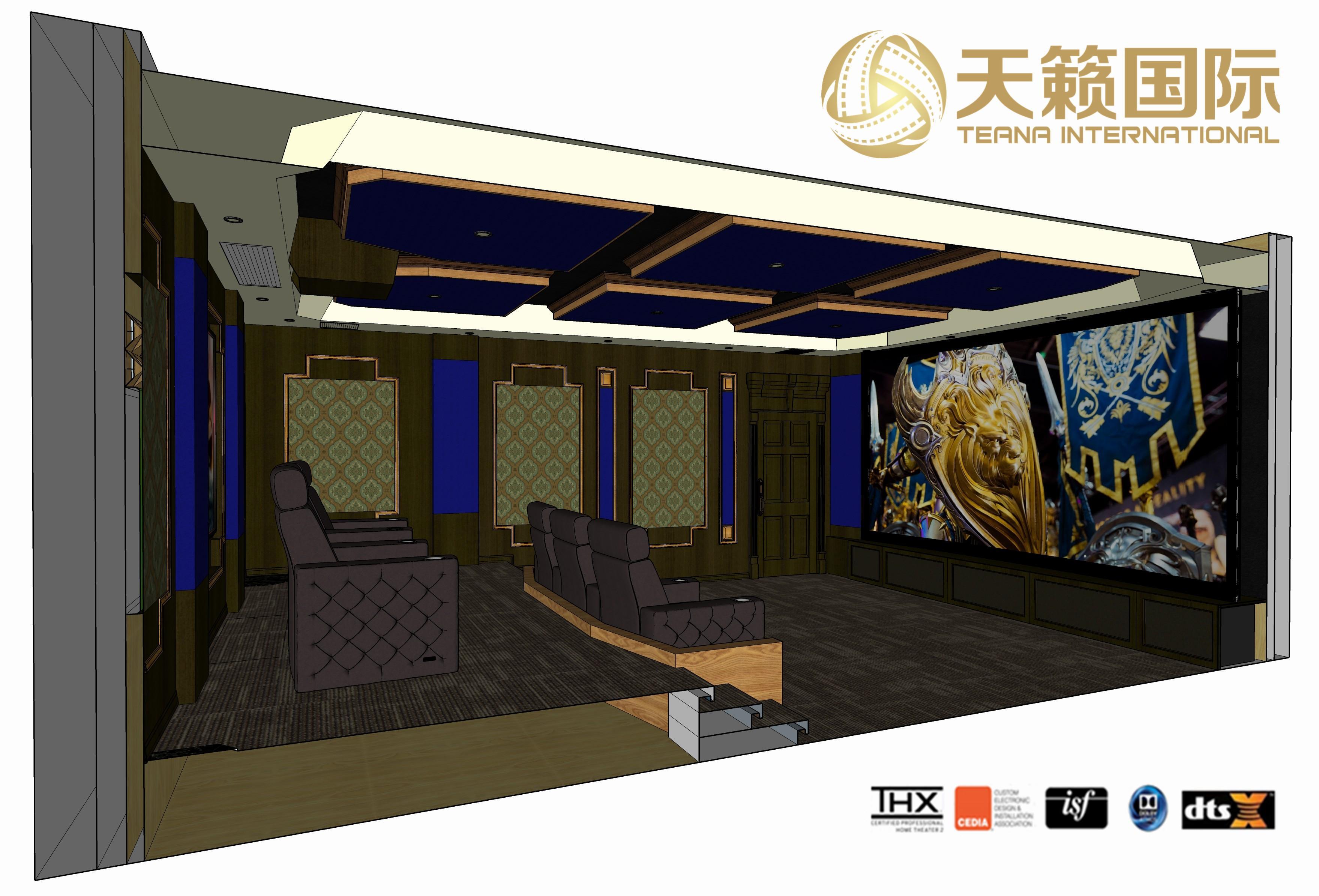 为了兼顾声学处理的专业性与室内设计的艺术性。在影院装饰设计上,美式大气风格十分突显,大胆采用略显木质元素作为主色调,辅以冷色色块组合,高落差的剧院式双排座椅,打造一个雅致舒适,融合高端视、音频、智能科技,声学规划,人体工学等于一体的高档私人视听空间。