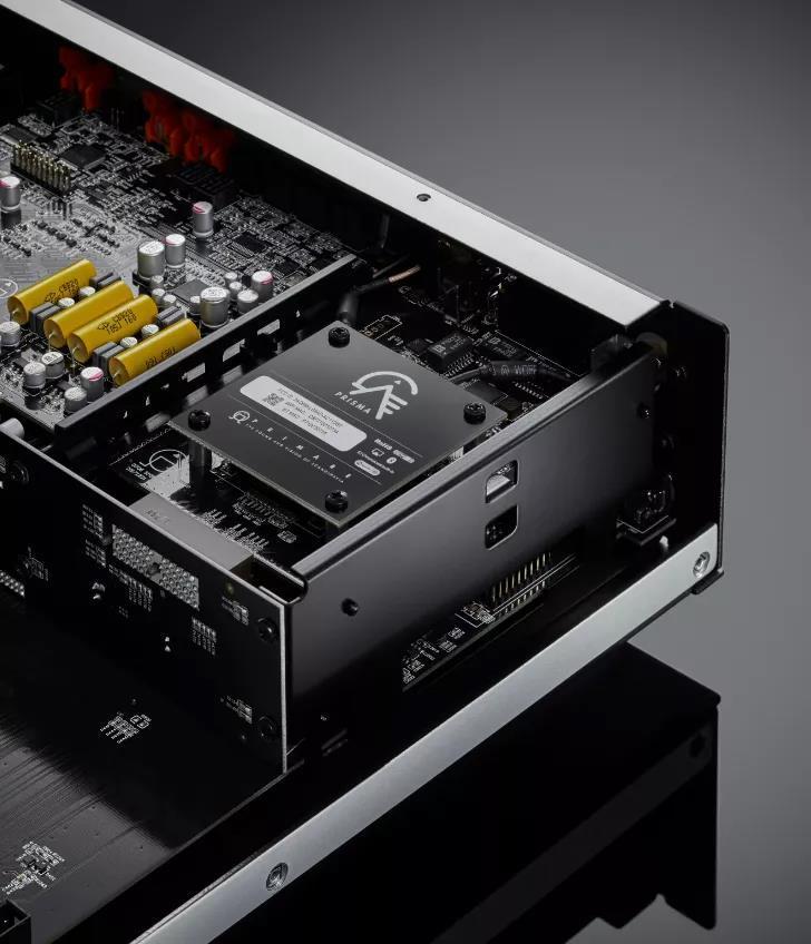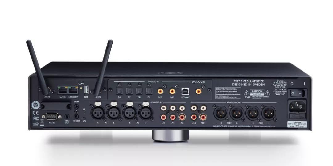 Primare PRE35 Prisma網絡串流前級和A35.2立體聲後級,延續了翩美的北歐簡約設計理念,其產品線都以鈦色以及黑色兩款顏色為主,機身底部是翩美標誌性的3墊腳設計,穩固且精緻。PRE35 Prisma是一台模組化立體聲前級處理器,利用雙XLR輸入和輸出,以及內置了有別於傳統高性能前級的WiSA技術,有效地展現高解析度的無線訊號傳輸,更好地搭配無線揚聲器。內置的WiSA技術,其模組化設計允許隨時升級擴充數模轉換模組DM35,以及具備Prisma稜鏡控制與串流技術的SM35模組,從而實現極高的系統定製靈活性。所謂WiSA,即Wireless Speaker AndAudio,是一種專為無線音頻傳輸而開發的通訊協定,工作頻段定在5.2GHz至5.8GHz,與2.4GHz、藍牙和Wi-Fi都不同,WiSA無線技術採用無磨損的無線的信號和能量傳輸的技術,具有短距離通信、高實時性,以及高節點容量等特點,不易受到干擾,也正因為它是專為無線音頻傳輸而開發的技術,所以更適合用於音響設備之間的無線通信需求。