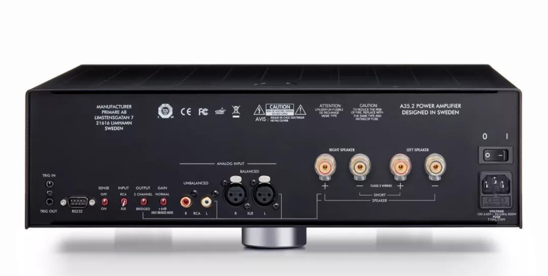 既然有前級功放怎能缺少後級放大器呢?這次搭配的同樣是來自Primare的A35.2立體聲後級放大器。A35.2立體聲放大器是PRE35 Prisma的最佳搭檔,同時也是採用最新的UFPD 2模擬放大技術的產品中最強的一款。UFPD2模擬放大技術,是Primare屢獲殊榮的UFPD全模擬放大技術(UFPD all-analog)徹底更新後的版本,融合了三十多年來設計與生產放大器所積累的大量經驗。每聲道在8Ω時展現200W的輸出功率,當阻抗減半時更達到了400W,對驅動任何揚聲器都不存在「難推」的問題。