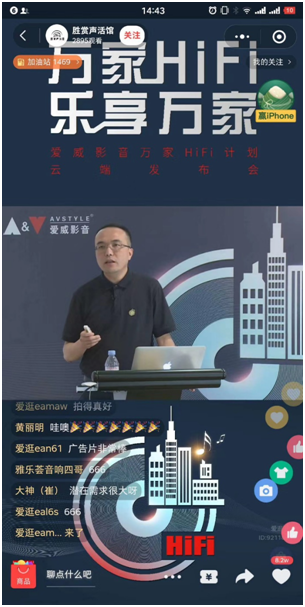 2020年6月23日,爱威影音在上海举办了主题为“万家HiFi乐享万家”万家HiFi计划发布会。正式面向中国音响行业推出“万家HiFi计划”。本次发布会通过网络直播的形式向全国音响行业同行以及音乐爱好者进行直播,整个直播吸引了超过9000人的关注观看。