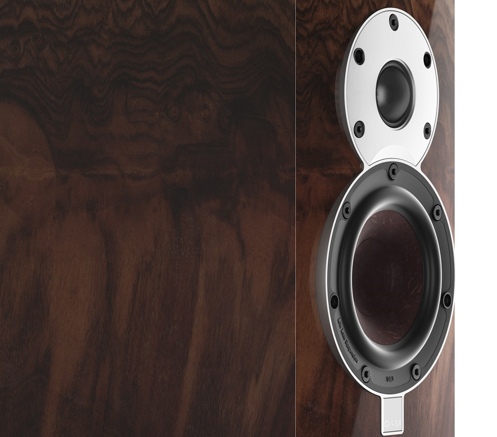 耀眼的胡桃木金瘤紋貼面外觀就意味着DALI MENUET SE跟歷代產品與眾不同。每對箱體都精心選擇相近的顏色和紋路,每對揚聲器外觀都是獨一無二的。除了堪稱收藏級別的胡桃木金瘤紋貼面之外,箱體還採用僅在DALI高端系列中使用的高光鋼琴烤漆工藝。金瘤紋是胡桃木樹瘤的切面紋路,是樹木對來自外界的受傷的反應,例如被擋住的昆蟲感染或撞擊造成的損壞。由於篩管的斷裂造成局部營養過剩,而引發的無序細胞分裂形成瘤狀組織。它基本上是疤痕組織,通常出現在根部或靠近地面的樹榦上,因為纖維全部扭曲在一起,從而形成複雜而美麗的圖案。金瘤紋是胡桃木紋路中密度最高、紋理最炫麗、質地最堅硬細膩、品質最好的紋路,是製作胡桃木工藝品的最佳用料。胡桃木一般至少需要生長60年才能用,出材率不到30%。而形成樹瘤則更為罕見,光生長周期就達百年以上,其中金瘤紋的產出不足1%。