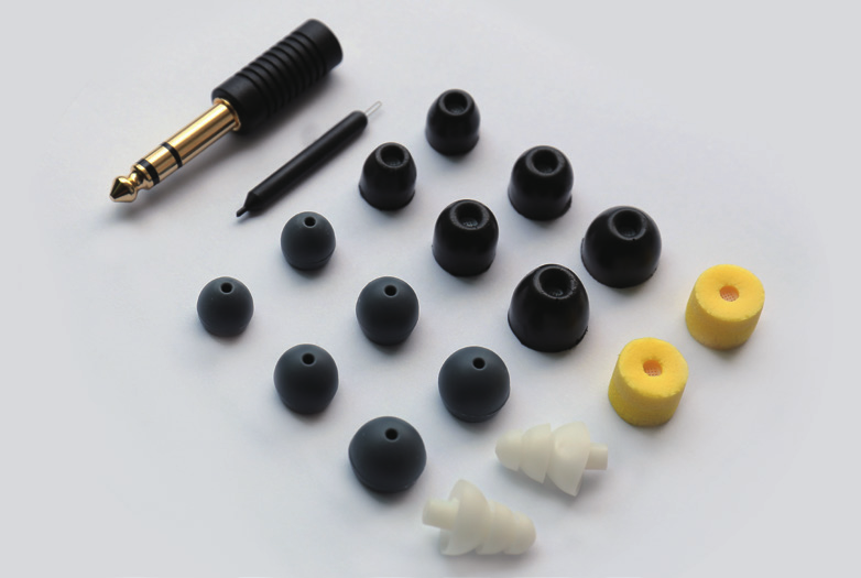 随机配件还是相当丰富的,除了收纳盒,还有大大小小的耳机套,有记忆塞和硅胶塞,以及一组C套,还有一个6.3mm转换头和清洁棒,因为腔体管并没配备防尘网罩,所以需要经常清洁腔管以免灰尘异物进入腔体内部造成声音有损,甚至损坏单元。腔体管没有配备防尘网罩,所以记忆塞和海绵塞都内置了防尘罩,如果用普通的硅胶C套和三节套则可能会混入灰尘耳垢等杂物,经常清洁是必须的了。