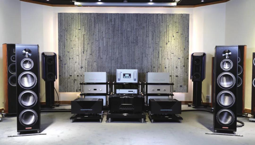 在威达公司的陈列室,全套系统早已准备就绪,这次搭档全套Gryphon Essence前后级开声演示的是Magico A5座地式扬声器。此前,美国Magico已发布过A3座地式扬声器、A1书架式扬声器、ACC中置扬声器和ASUB有源低音炮,这次试听的A5是该系列的新成员。Magico A5座地式扬声器采用五只驱动单元,体重超过81kg,身高1370mm。A5配置了Magico首款127mm专用中音单元和三只229mm低音驱动单元,这些单元都使用了独家的增强技术,即采用石墨烯纳米Tec碳纤维夹心圆锥体,达到Magico宣称的前所未有的刚度/重量比。A5高音单元仍然采用铍振膜,这是延续M系列的高音单元设计,与其他A系列型号相同,A5搭载的是28mm的振膜尺寸,采用钕磁铁驱动系统加上适当的阻尼物质,让高音单元产生低失真、低音染、高控制能力与线性表现。还有一点值得注意,Magico A5座地式扬声器成为世界首个使用Mundorf新型M-Resist Ultra箔电阻器的扬声器产品。经过多年的发展,新电阻可提供更大的功率处理能力、透明度和流动性。分音器(Elliptical Symmetry Crossover)使用来自德国MundorfEB Gmbh的最新元件,对一共5个单元进行了声学处理。该3音路分频设计可保持相位线性度并最小化互调失真的同时最大化频率带宽。