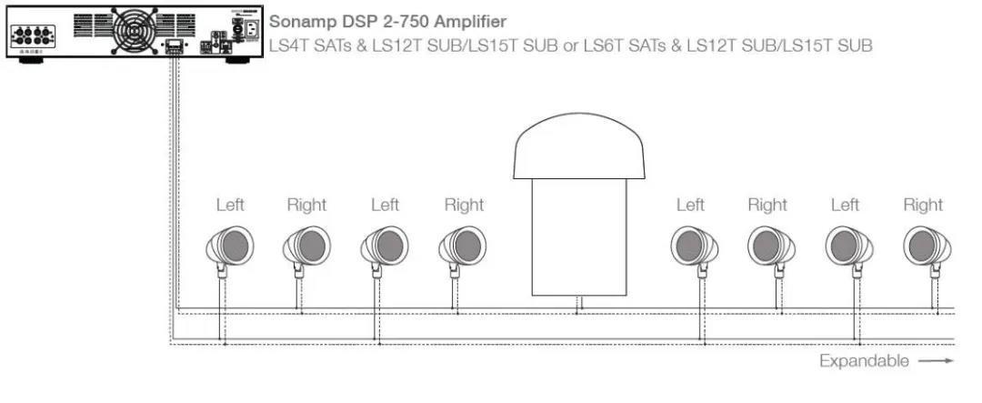 當然也不排除有些特殊情況,如SONANCE的SR1 8.1戶外系統,雖然堅持了定阻輸出的設計,但是整個系統阻抗連接以後正好8歐姆,排線則是交叉排列,左右聲道互相交叉,只要2組音箱線就能夠完成整套系統的鏈接,既保證了音質,又保證了在花園的任何區域聽到的都是立體聲還原。