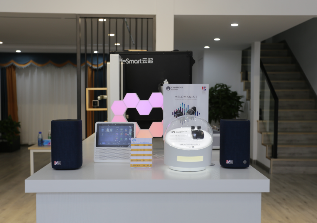 走进网冈智能影音您会感觉特别的干净清爽,空间虽然不算大,但别有洞天。大厅的一侧为精心打造的客厅影院。由Cambridge Audio英国剑桥的MINX系列+激光电视组成的客厅系统。英国剑桥Cambridge Audio MINX系列重新定义了如此体积小巧扬声器的可能性。