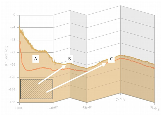 下面我们展示三张“折叠”原理图(说明:以此方式进行简单和方便的理解)。依然是以24kHz以上的极高频声音信息为例。