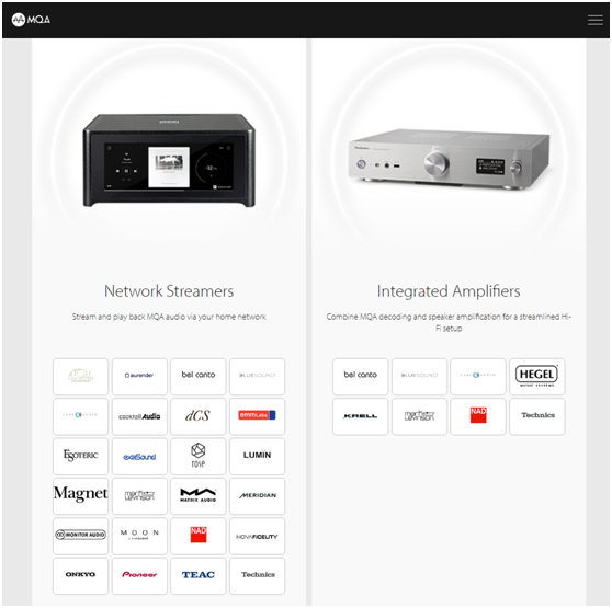 目前支持MQA的产品十分多,其中作为ONKYO用家的本人也得此收益。不过目前ONKYO支持的MQA产品只有几款,包括Granbeat和部分便携式播放器,而Hi-Fi产品领域方面则有TX-8390(网络立体声接收机)、CR-N775D(流媒体CD接收机)、R-N855、TX-8250、TX8260和TX-8270(网络立体声接收机)、NS-6130和NS-6170(网络音乐播放器)。