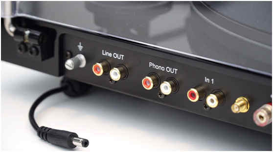 背面接口方面,Line Out可以讓內部唱放初次放大的模擬信號輸出給前級等設備,但音量依然需要Juke Box E黑膠唱盤的音量旋鈕進行調節,而Phono Out則可以讓Juke Box E唱盤(純唱盤模式)接上外置獨立的唱頭放大器。我們還可以看到Line in輸入,也就是把黑膠唱盤作為純粹的前級功能,然後讓模擬信號進行放大。