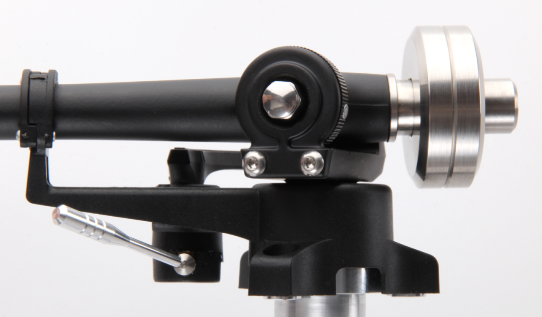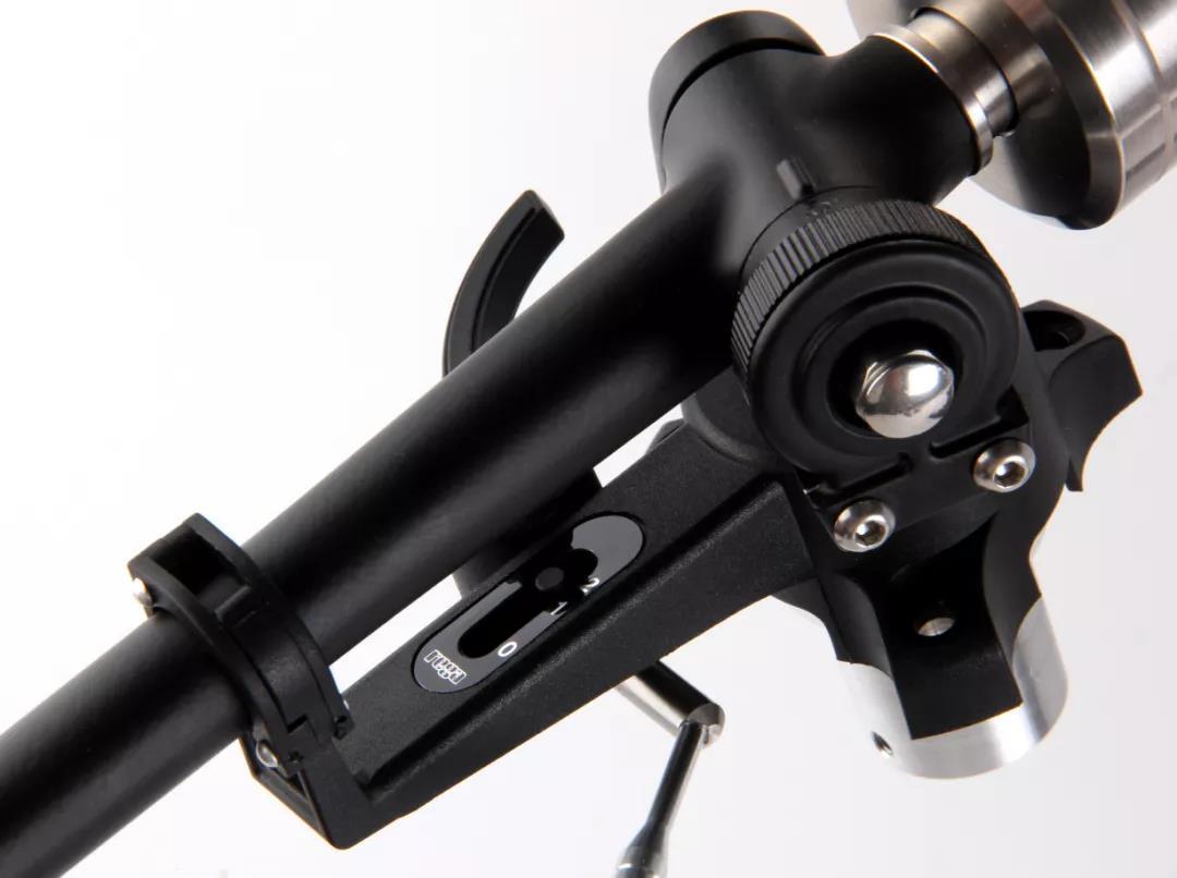 藉此機會,順便科普一下什麼是動態平衡唱臂。一般情況下,唱臂分為「靜態平衡式」和「動態平衡式」兩種。所謂「靜態」,是指唱臂完全處在天平狀態下。唱針的壓力(通常稱為:針壓)是通過移動配重來產生並調節;而所謂「動態」,是指針壓的力量不是來自自身重力,而是利用彈簧拉力產生並調節。這兩者的區別在於當唱針遇到向上的力量時,產生微小的彈跳後,靜態平衡方式是依靠自身重量落回原來的位置;而動態平衡方式是利用彈簧把唱頭「拉」回到原來的位置。不言而喻,動態平衡式的唱臂要比靜態平衡反應靈敏,唱針「歸位」的速度快。
