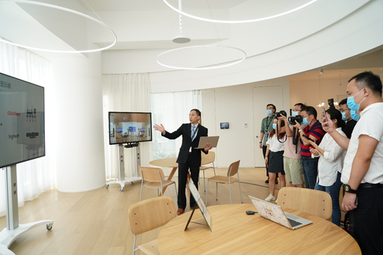 索尼中国设计中心高级设计经理郑奇为大家分享了索尼商业解决方案体验中心的设计理念及功能分布。影像分析产品市场科总监梁文耀随后带领现场嘉宾参观并介绍了索尼商业解决方案体验中心的智能前台、多功能厅、交互会议室和智能会议室等主题区域。索尼通过各区域产品相结合致力于为企业客户及合作伙伴提供的一站式的索尼商业解决方案体验。