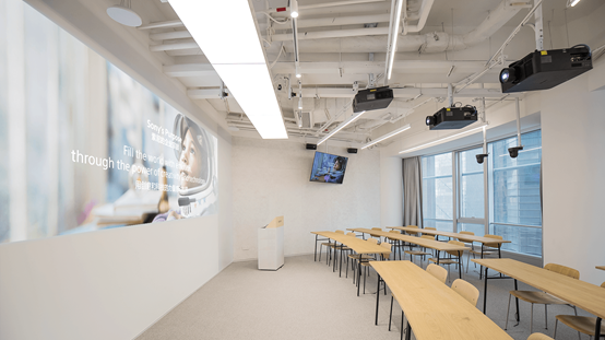 “多功能厅”是索尼商业解决方案体验中心中最重要的展厅,汇集索尼黑科技“增强分析单元”,音频产品“自动声向追踪麦克风”,索尼激光投影机宽幅融拼等产品,为大型会议、报告、培训等提供专业音视频解决方案,打造拥有多应用场景的功能厅。
