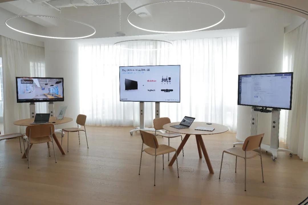 一直以来索尼在专业领域提供了各种不同种类的商业产品,以及定制化的会议室整体解决方案。本次开业的索尼商业解决方案体验中心由索尼负责整体规划及设计,包含解决方案展示、系统集成和展厅设计等,以人工智能和客户体验为中心,能为参观者呈现出多种会议室功能应用案例。