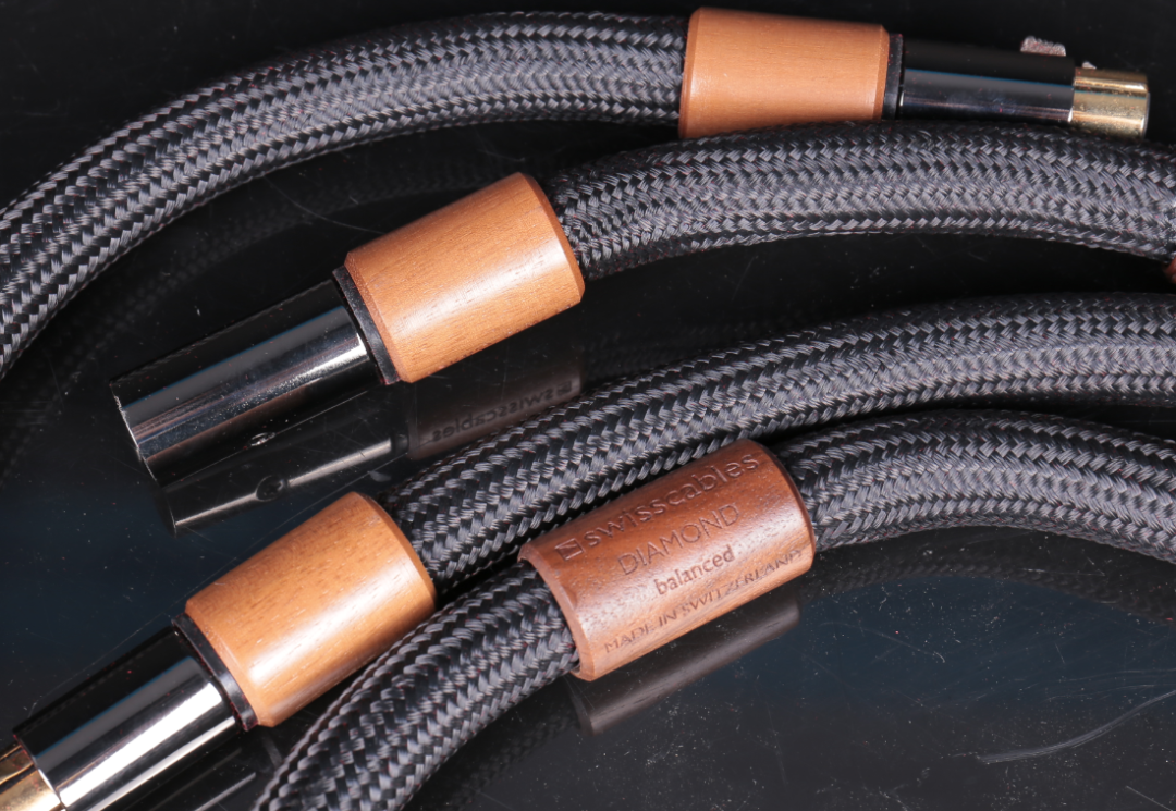 如今SwissCables總共分為四個系列,分別為入門級別的Evolution、Reference,另外就是進階以及旗艦系列Reference Plus和Diamond,其中Diamond旗艦系列則為近年新貴,當中同樣展現SwissCables一貫的技術優點。儘管級別最高,Swisscables的線材,光用看的不會驚奇,黑色的線身質樸無華,視覺上比較亮眼的是端子外層的木頭保護殼,比起常見的金屬端子,看起來外觀溫柔許多。可以快速判斷其型號的便是套在線材上的木質環,並標有SwissCables的醒目字樣。另外值得一說的是,SwissCables線材握在手上的質量特別輕,這種體驗是我接觸很多現場來說罕有的,在同等或更優的屏蔽表現下,超輕質的線材好處是不言而喻,至少對於架子上的器材來說減少了很多後拽的下壓力和拉力。
