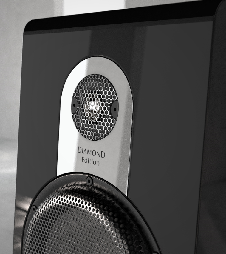 Marten不是第一次在箱体背面使用被动辐射单元的,但尽管并非旗舰系列,但Parker依然在背面加上被动辐射单元。Parker Trio前障板采用两个7.5英寸的陶瓷中低音单元,背后同样有两个9英寸的铝合金振膜被动辐射单元,会与主动单元实现协同运动,而高音部分采用了一只纯陶瓷高音单元,另外值得一提的是,Quintet、Trio和Duo都可以升级为Diamond Edition版本,即是将陶瓷高音升级为纯钻石高音单元。陶瓷普通版和钻石升级版的单元部分装饰条上,会有Diamond Edition的字样进行区分,这并不仅仅是更换单元这么简单,分频器与单元接线端子都会有所升级。Trio和Quintet一样都是2.5分频的座地式扬声器,只是在Trio数量基础上多一倍和少一倍,性能参数各有不同,同时三者箱体设计都是前窄后宽。