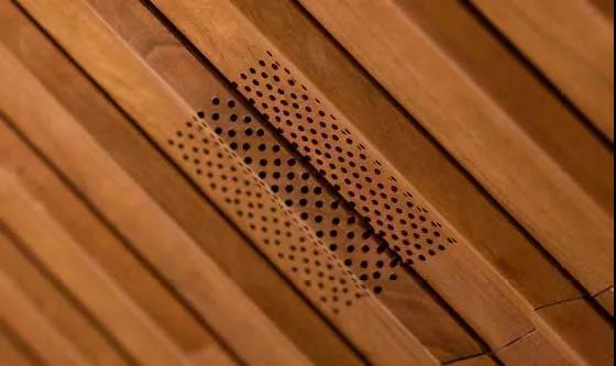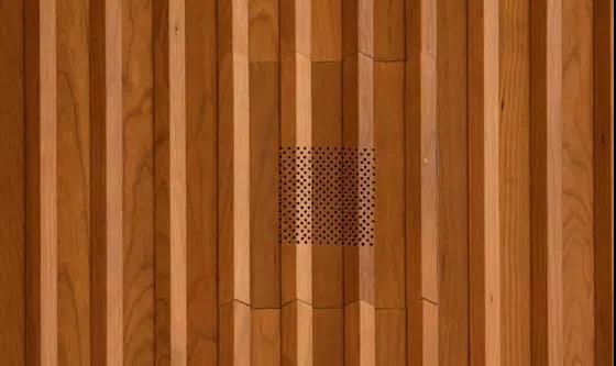 当地木工在漂亮的硬木饰板上打孔,令声音传入空间