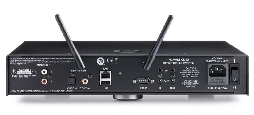 一組USB type A的輸入,可供用家外接儲存裝置,讀取外接硬盤裡的音樂檔案。一組RJ45的以太網絡輸入,可以進行數字串流,播放自家NAS里的音樂或雲端音樂。機背的天線可供藍牙傳輸,任何人都可以簡單地透過配對來分享音樂。它的串流功能不是蓋的,AirPlay 2、Chromecast built-in、Spotify Connect、Roon Ready等功能,讓你通吃實體唱片和在線音樂。而Prisma模塊還提供了多房播放控制的功能,如果你家有2台以上的Primare訊源器材,都可以一機控制。什麼機呢?當然是手機,Primare CD15 Prisma可透過手機來進行所有功能操作。