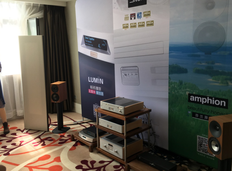 房间里主要展示了Cambridge Audio、Amphion、Vienna-acoustics、Magnepan品牌。