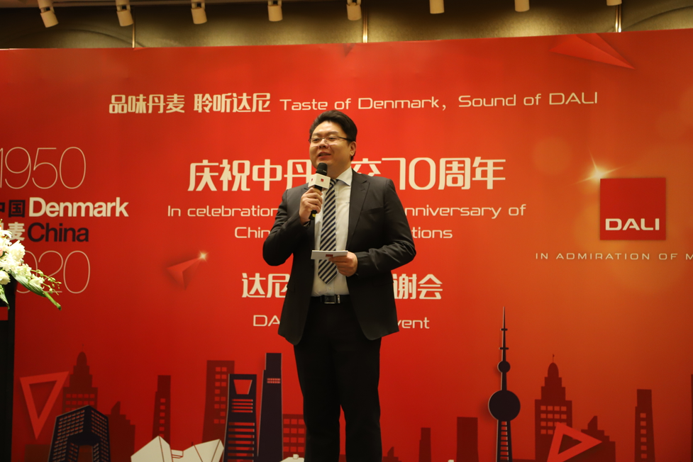 随后由丹麦王国驻上海总领事Jakob Linulf林朗先生发言。他表示今年对于很多企业和公司来说都是非常艰难的一年,达尼通过更高质素的音乐还原,让生活质量得到更好提升,这一点让Linulf先生特别自豪,尽管这一年十分艰难,但是值得高兴的是恰逢中丹建交70周年,意义非凡又让人十分难忘。丹麦与中国建交有着悠久历史,也见证了中国政治经济的快速发展,对两国发展起到很大的促进作用。丹麦作为世界设计之都以及音响王国而骄傲,这些优秀的文化和传统正在向中国传输,像达尼高端音响企业一样,让中国社会体会到优质生活的魅力。相信达尼音响未来在中国发展将会越来越好,越来越成功。