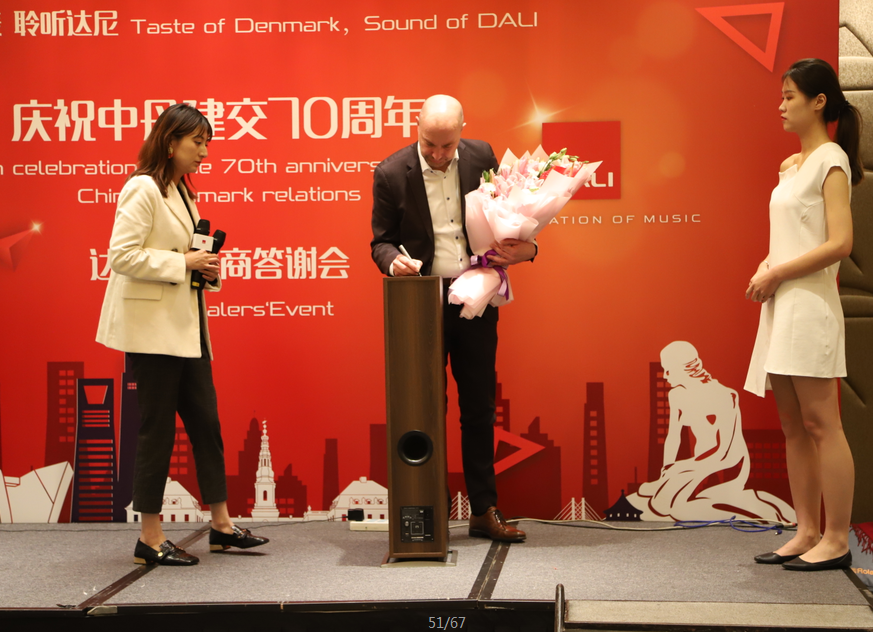 随后邀请了中国丹麦商会董事会成员Lars Myrup先生发言,他表示丹麦企业在中国发展良好,得益于中丹友谊般的外交关系,以及两国社会各界的支持和配合。达尼就是一个很好的例子,因为达尼首先认识到丹麦消费者的需求,而这在市场上现有的扬声器品牌中是无法满足的。尽管中国有着让我欣喜的发展速度,但人们更需要在工作和生活中找到平衡,而这一点在丹麦社会上发展则很好,像达尼这样高端音响厂家也让中国市场感受到高素质生活的重要性,并祝愿大家与达尼(中国)的合作中一切顺利。