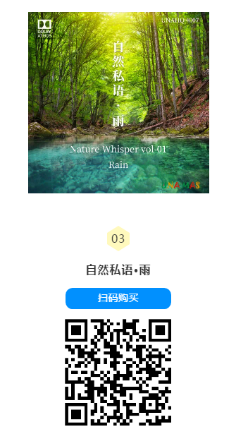 这张纯粹自然声专辑收录了淅淅沥沥的小雨和中等程度的雨声,令人心境平和,更易读书和安眠。