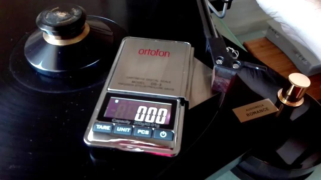 黑胶唱机当中整个唱臂结构就像是一支杆秤,而配重尾陀正是用来调节针压。尾陀上的数字代表针压重量,1.5g、2.0g、2.5g等不同重量都有。唱臂针压调零后只要对应唱头列出的规格来旋转,转多少唱头的针压就重多少,误差一般在0.1克左右,可以满足基本的针压调整需求。如果你的唱臂配重尾陀没有刻度,就需要使用针压计,将针压计放在唱盘机转盘上,并将唱针放置到称重区,大部分针压计对测量点有严格要求,务必将针尖落于测量点才能够准确称重。针压调试完成后,将唱臂放回唱臂锁上并固定。现在找到唱臂上的扛侧滑力机构,并将其设置为与唱头针压相同的数字。这个小细节可以防止唱臂在向心侧滑力下产生声道不平衡,同时也保护唱针悬杆免于因长期左右受力不平衡产生形变。