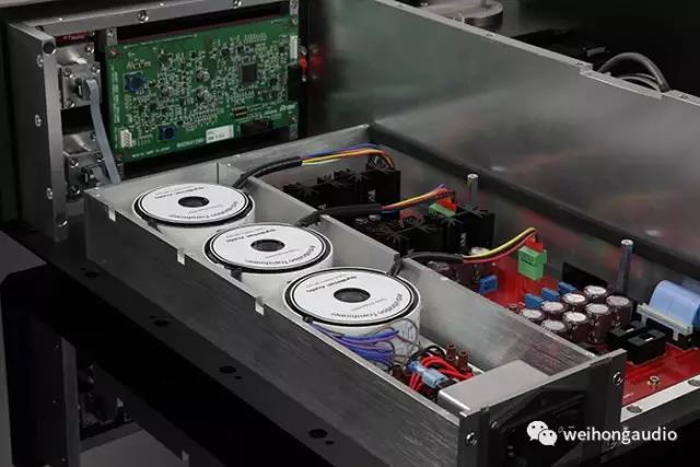 Origo每一个独立的功能部分都做了隔离。在电源、转盘、控制器、dsp和DAC等各部分之间,都采用5毫米厚的铝面板作为屏蔽层。所有非音频相关电路都是使用高速数字电容隔离器来隔离。这意味着几个不同的设备无缝地拼凑在一起,并且没有任何有害的干扰。只有音乐,纯净的,完美的。