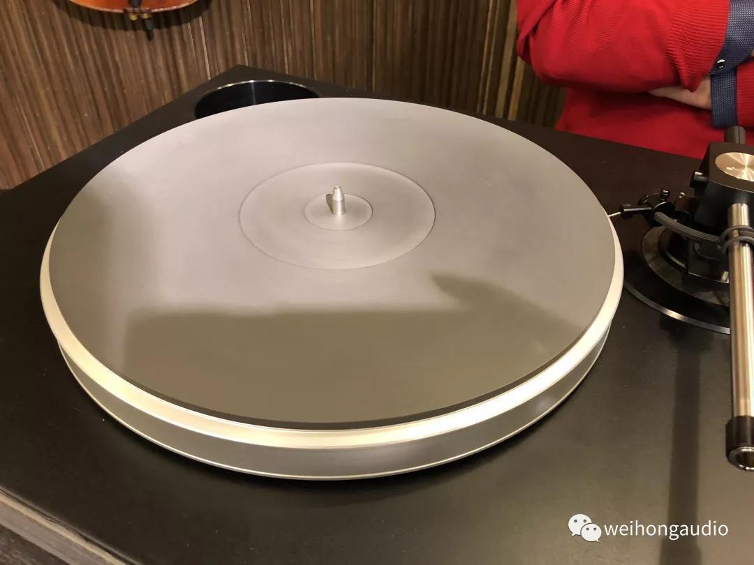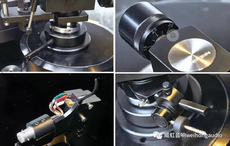 转盘上面的唱片垫不是橡胶类的软材料,Volker采用石墨制作了一个厚薄不均的圆盘,外围稍厚中间较薄,使用时必须搭配原厂的唱片镇,这样可以让弯曲的唱片变得平坦。到此为止的设计都是Einstein自己完成,更精细的唱臂与唱头就必须寻找其他伙伴合作。