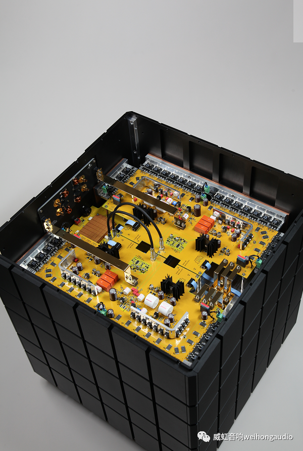 随着放大器数量有4只增加到8只,所以Fulcrum电流增加了一倍,同时功耗也增加了一倍,而产生的热量将是巨大的。散热器是保持其元器件最终性能的关键。固体铝垂直散热片可以使空气上下对流,而整个铝外壳作为一个巨大的散热片,将保持放大器电路内部处在最佳的工作状态。