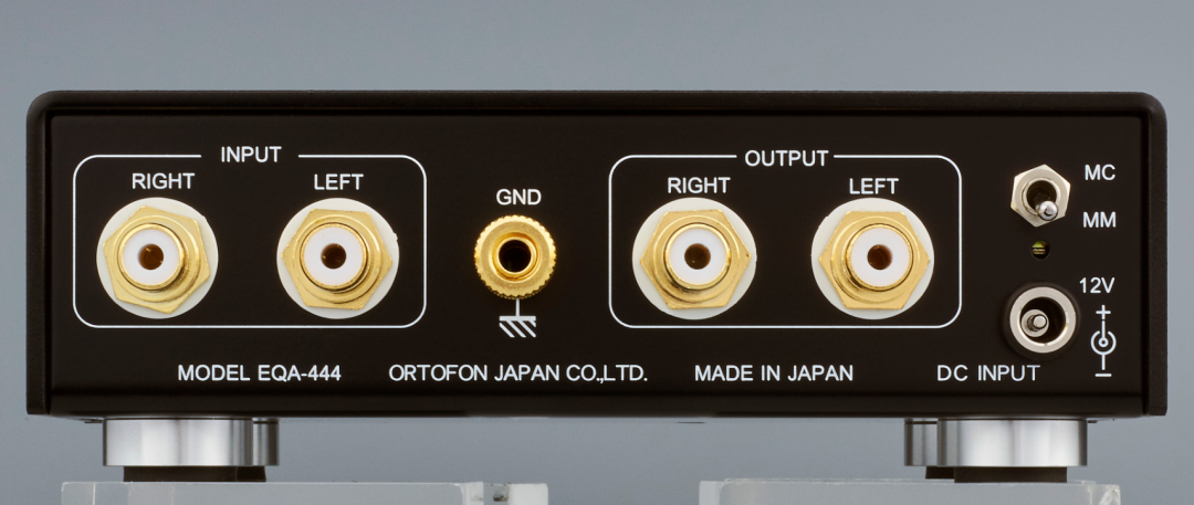 而EQA 444是一款兼容MM/MC唱头且具有出色性价比的新一代唱头放大器,它是Ortofon日本与丹麦总部的首席工程师Life Johansen博士进行了全面技术合作的成果。EQA 444 内置的NF型均衡器电路采用高质量和高精度音频等级部件,音乐信号IN/OUT的RCA插孔为镀金型,并留有足够的空间,因此,可以接驳高品质的大尺寸大直径音频线缆插头。除此之外,厂方为其全新设计了一种高性能机箱,该机箱具有高刚性,出色的抗振性和高度的安装位置自由度。使用上有一个诀窍,通过将EQA 444摆放更靠近唱机以使用更短的唱机信号线,缩短信号通路以使音质进一步提升。功能方面,Ortofon致力于提供一种简单的配置方式,用家可以通过使用开关进行切换来享受MC/MM的乐趣,其余一切繁琐的阻抗与电容设置均直接交由EQA 444进行处理,无需调整。值得一提的是,本机的电源部分采用了外置电源交流适配器(兼容100V-240V),这种设计优化了机身体积同时减少了内置电源的噪声干扰。