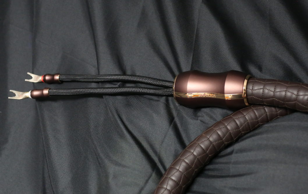 除了以上的區別之外,這次的EnigmaVeyron系列KLC-EV-1.0喇叭線在外觀上最大的特點便是線材外層套有表面刺繡的優質皮革,刺繡圖案是Kharma的品牌符號,真皮套管也是手工縫製而成,並且被精心地包裹在線體之上。除了美觀之外,真皮套管還具有減少外部振動和保護線材內部結構的功能。
