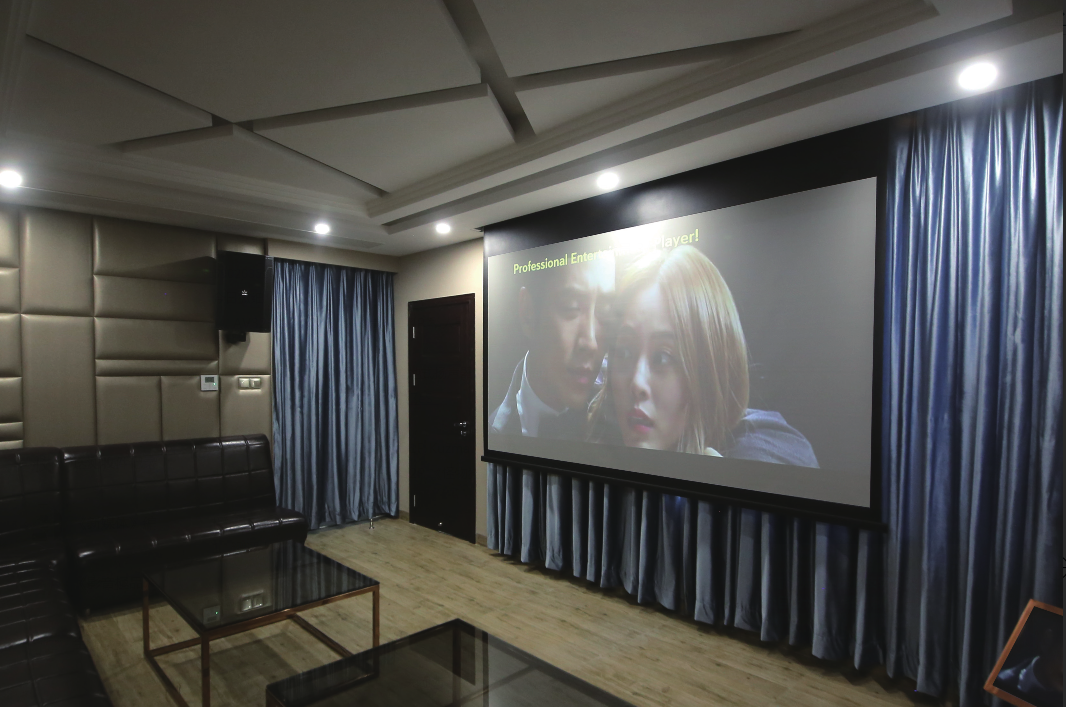 该项目除了观影功能,还具备独立的K歌房。KTV扬声器采用一个12寸低音单元和一个1.75寸压缩式高频驱动器组成,是一款高效能的无源两分频扬声器。适用于各种固定安装的高级娱乐场所,高功率扬声器单元和轻巧的经计算机深化设计的用高档桦木夹板构建的箱体,刚性好、内阻高,抗潮耐温性能好,达到平滑的特性,展宽的频响特点和良好的人声处理确保听众和演唱者都处于极为舒服的状态,听者不厌、唱者不腻,低频饱满,弹性十足,人声磁性丰富。