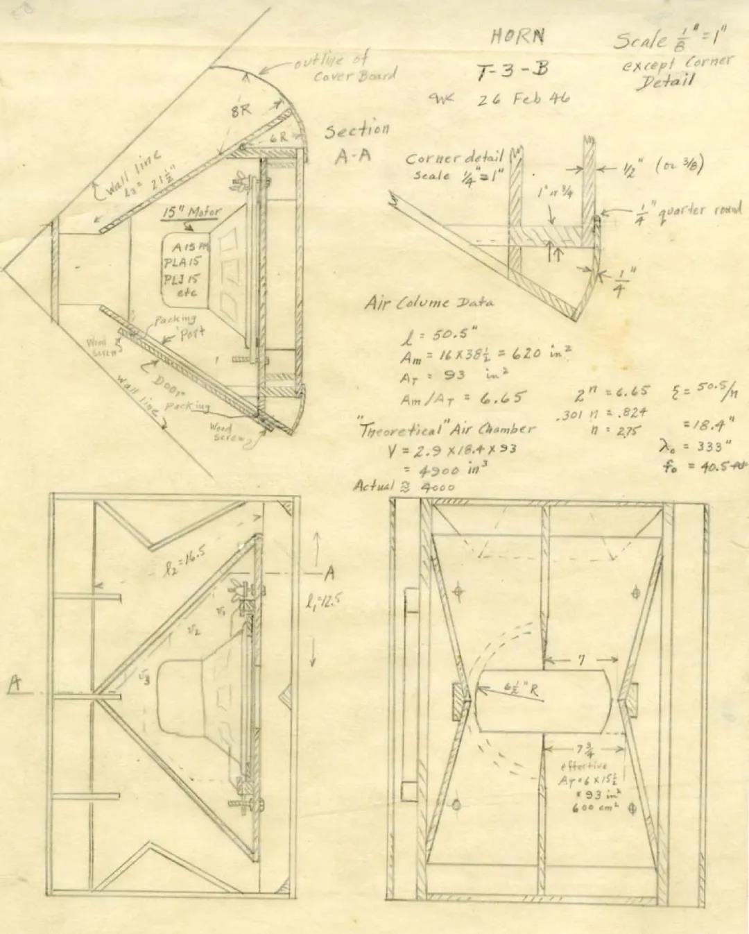 当年Paul Wilbur Klipsch所画的Klipschorn设计图,已是无数次试验的结果,所以才能成为经典。