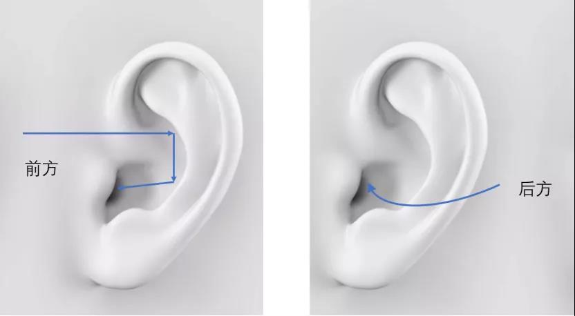 顯然,正前方聲源的傳播過程和正後方聲源的傳播過程是不一樣的!因為我們的耳朵並不是前後對稱的。來自正前方的聲音經過耳廓反射,可以直接進入耳道;而正後方的聲音則需要繞過耳廓才能進入耳道。也正是由於這種不同,我們才可以分辨出聲音來源的前後。