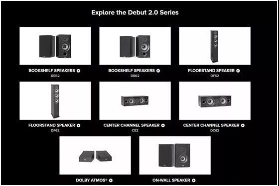 目前Debut 2.0系列下产品十分丰富,包括DF62和DF52座地式扬声器、DB62和DB52书架式扬声器、DC62和C52中置扬声器、A42 Dolby Atmos顶置天空声道模块、DOW42挂墙扬声器以及SUB3010低音炮。换句话,9款产品可以按照数字归类为3大系列——62、52和42。62系列和52系列具备座地式、书架式和中置扬声器,而42系列则分类为顶置模块和挂墙扬声器。